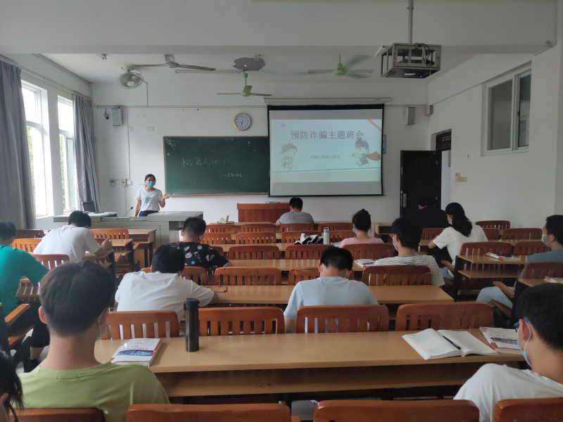 5月11日下午,我系机器人18-1班在6302教室召开预防诈骗主题班会,本次班会由班主任宁钰球老师主持。