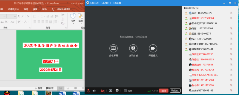 最后,在再次强调返校注意安全的方面后,自动化19-4班此次线上主题教育班会正式结束。