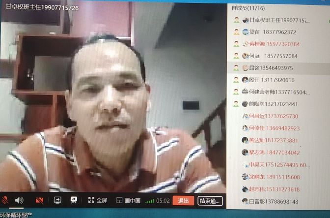 班会开始,由班长屈铭打开群语言,同学们及时进入语音开始班会,在班长宣布开始班会后,由班主任甘卓权老师进行讲话,讲话主要有以下几点:一、首先是对现在疫情状况做了基本的介绍和分析,然后班主任向同学们宣传了疫情期间的基本防护知识;二、详细说明了返校期间需要注意的事项;三、到校后需要遵守的要求及规定。班主任甘卓权老师发言结束后,由辅导员何建金老师对到校后的学习安排做了补充说明,同时又由班主任回答了同学们提出的对于补考的问题。期间同学们还有其他疑问的,都由班主任和辅导员对此一一进行了解答。疑问都解答完毕后,班会也接近尾声。