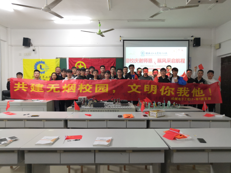 12月4日下午,机电17-本1团支部于藏修楼3406教室开展“迎校庆谢师恩,展风采启航程”特别主题团日活动,并借助本次活动增加以“共建无烟校园,文明你我他”为主题的知识竞赛。团会由班主任谢晓明老师出席,系团总支组织部成员以及机电17-本1团支部全体成员参与。