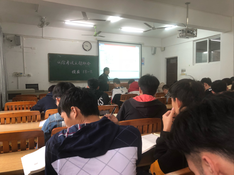 为进一步加强考风考纪教育,增强学生诚信意识,树立良好学习风气,共创良好考试环境,12月09日,模具18-2班在 6305教室组织开展了“诚信考试”主题班会。