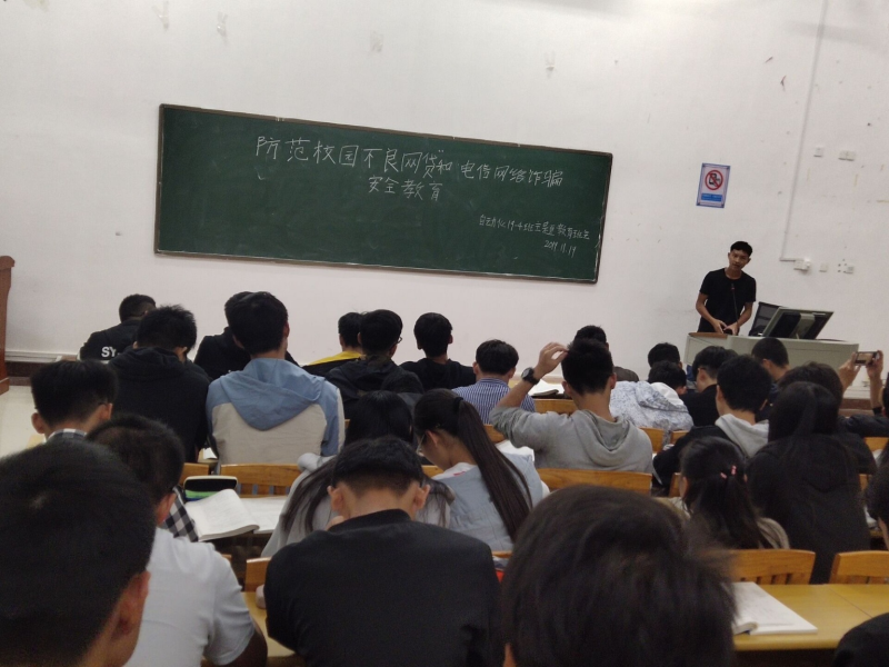 会议由自动化19-4班宣传委员莫从志主持开展,会议上对同学们进行了有关校园不良网贷和电信网络诈骗的常识和危害性教育。
