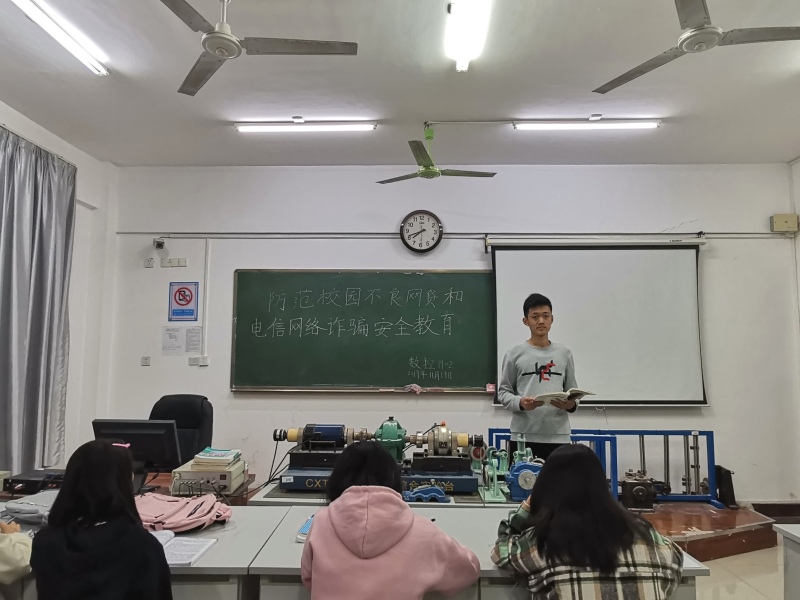 会上,由宣传委员首先对校园不良网贷的基本情况向同学们做了简要概述,并强调当今校园网贷和电信诈骗事件发生的普遍性和频繁性。同学们应树立正确的世界观、人生观、价值观,摆正消费观,克服攀比心理,从众心理,求异心理,求实心理,加强自身自制力。网络兼职刷单、网上购物和网上交友三项最为频繁的诈骗手段,我们要始终坚持“不轻信,不透露,不转账”的基本原则。学校可以通过易班,微信,QQ等方式,加强管理,能及时纠正超前消费和边渡消费等错误观念,远离不良网贷的校园文化环境和舆论氛围。最后,本次班会由宣传委员宣布此次班会圆满结束。