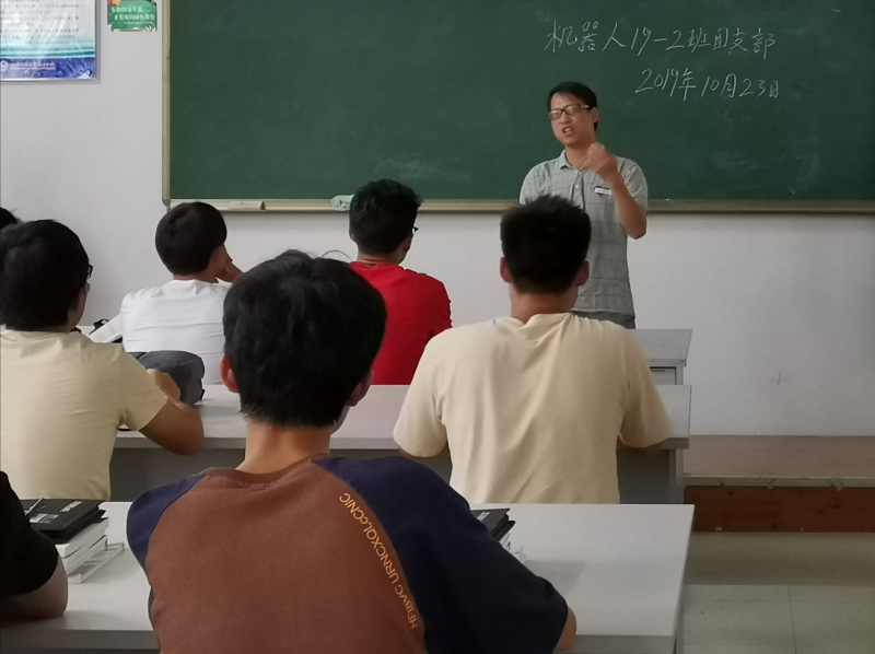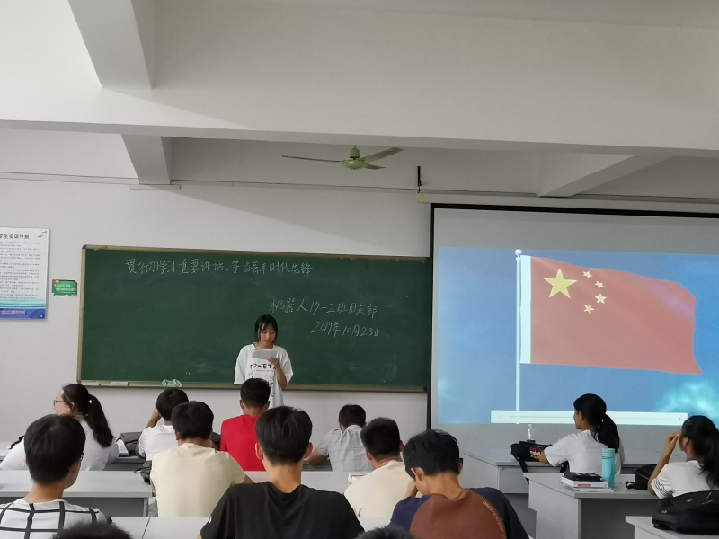 10月23日中午,机器人19-2团支部在藏修楼3402教室召开“学习贯彻重要讲话,争当青年时代先锋”团会。团会由团支书林志锐、组织委员何霖、宣传委员莫玉香负责,由团支书林志锐主持进行,出席会议的有班主任李杰老师及其全体成员。