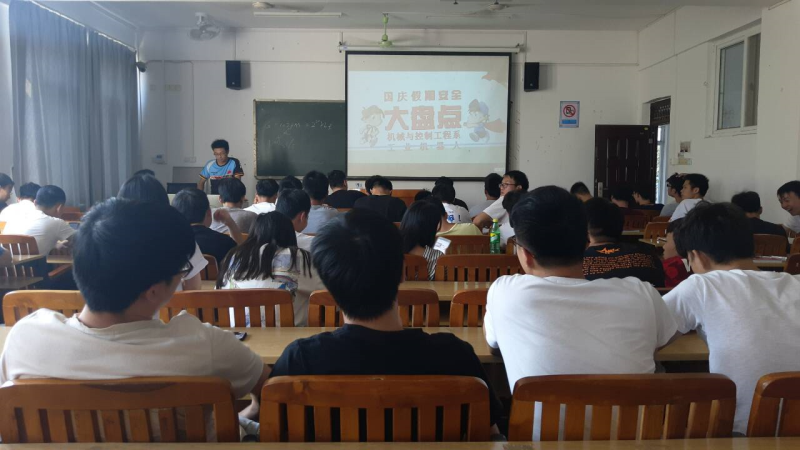 9月27日下午,机械系工业机器人17-1班在金工实训中心开展开学初及中秋安全教育主题班会,本次主题班会由班长岑石昌主持召开。