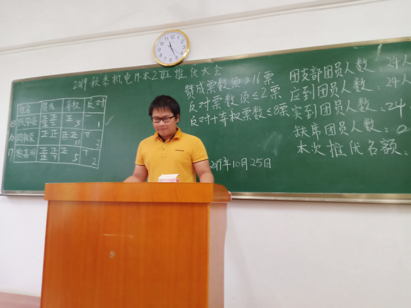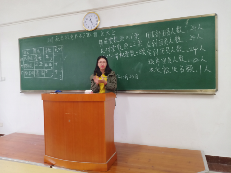 2019年10月25日下午四点,机电19-本2班在三栋3204室召开了团员“入党”推优大会,班主任李燕、班助谭军宇,机械系团组织学生会干事李品龙及机电19-2班全体成员出席此次会议。会议由干事李品龙主持展开,主要有以下几个部分。