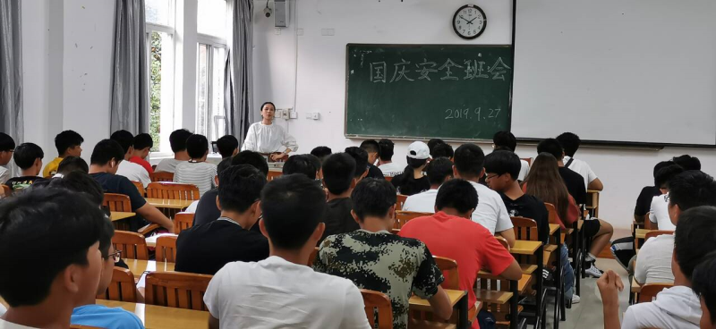 军训结束之际,我们机械设计与制造两个班的同学在班主任将赐玲老师及班助岑嘉州学长的指导下召开了2019年《国庆假期安全》主题班会。