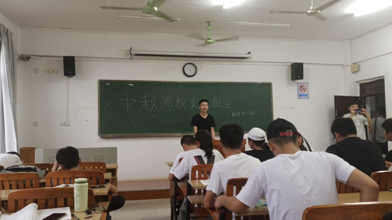 班长丁敬煜会上提醒了同学们放假的时间,强调了中秋离校交通安全,、用电安全、网络诈骗、等离校相关注意事项。并嘱咐同学们到家后告知他。并祝同学们能够与家人或朋友过一个花好月圆的中秋。