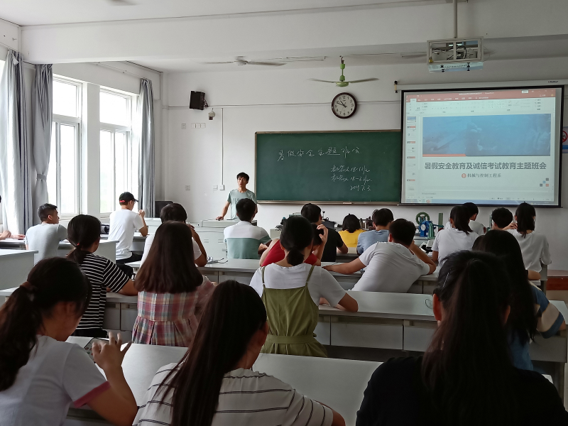 根据《桂林理工大学学生安全教育及管理暂行规定》,于7月3日下午,我系机器人18-1班、2班在藏修楼3303教室召开“暑假安全教育及诚信考试教育”主题班会。班主任宁钰球和奚富由老师出席此次会议。会议由奚富由老师主持。