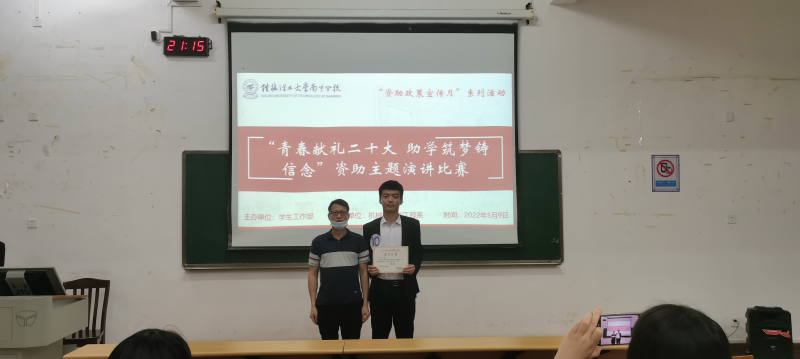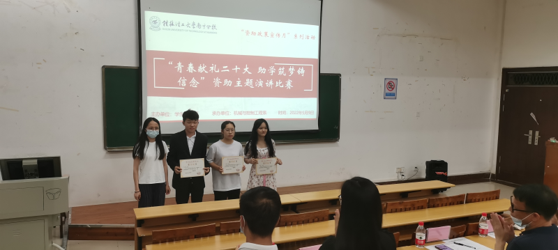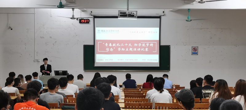 5月9日晚上,我系于8206教室举行以“青春献礼二十大,助学筑梦铸信念”为主题的资助演讲比赛。本次比赛由我系党总支副书记李杰、辅导员丁姗姗、丘东林、蓝慧萍、唐庆、王胜担任评委。