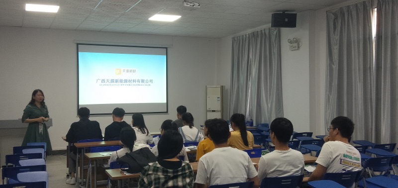 11月6日下午四点半,广西天源新能源材料有限公司(以下简称广西天源)在我校专场宣讲室(大创基地)举办了专场招聘会,广西天源人事部岑经理担任主持以及主讲,我系组织毕业生参与了本次招聘会。