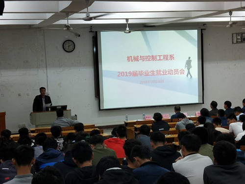 10月18日17:40,我机械系领导在启智楼208教室开展19届毕业生就业动员大会,出席的有系党支部书记袁斌、系副主任甘卓权、辅导员何建金以及毕业班班主任。大会由何建金老师主持,袁书记主讲。
