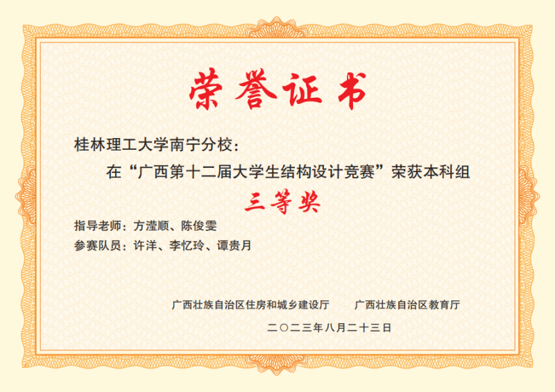 广西第十二届大学生结构设计竞赛三等奖