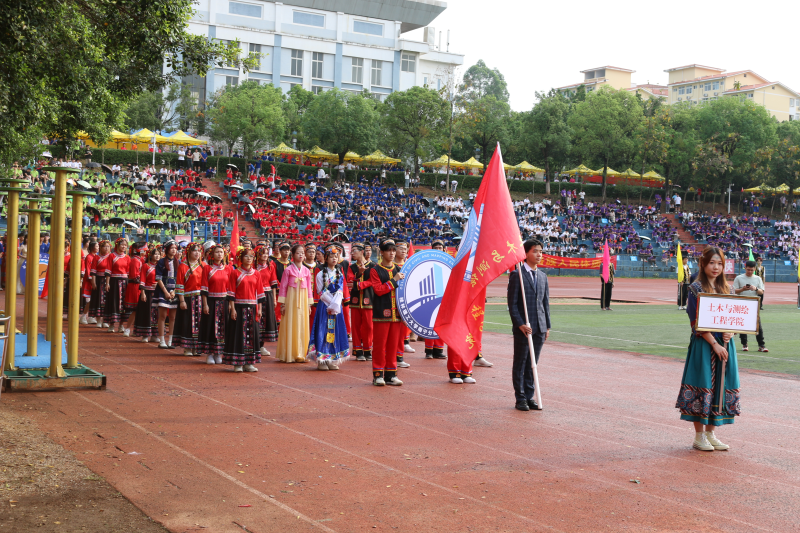 4月18日,在团结和谐、友爱互助、激情欢乐的校园氛围中,桂理工大学英国上市公司365第四届民族体育运动会开幕式在分校田径场隆重举行。