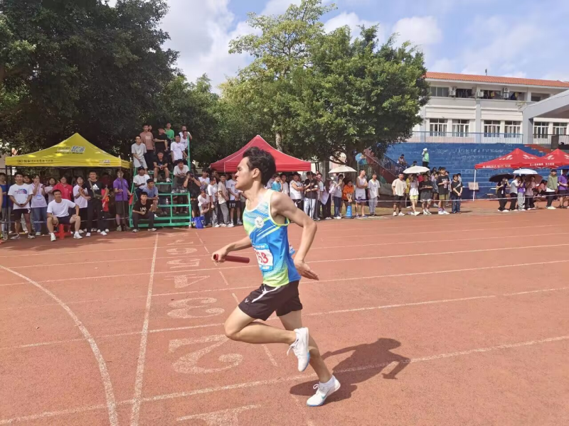 各系运动健儿们在赤红色的环道上展开激烈角逐。四个人的跑道,不止是速度与速度的比拼,更是团结与默契的考验。小小的接力棒,传递着勇气和力量,演绎着奋斗和拼搏。他们健步如飞、配合默契,团结一心,彰显我系运动健儿风采,展现出我系不抛弃不放弃的团队合作精神,更体现我系深深的集体荣誉感,为我系画上一个完整的句号。