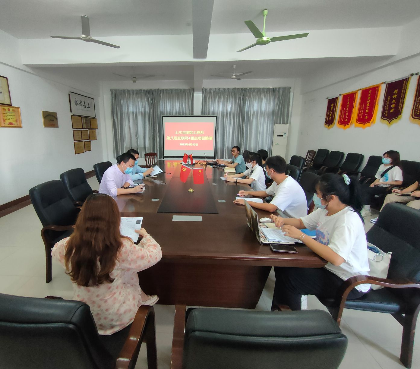为提高学生创新思维,完善第八届“互联网+”重点项目策划书和PPT,以及提高学生路演能力,土木系于2022年4月13日在物华楼6406会议室开展第八届“互联网+”重点项目路演和项目打磨培训会。土木系领导班子成员和项目指导老师组成评委团队,系部初选重点项目所有团队成员参加。