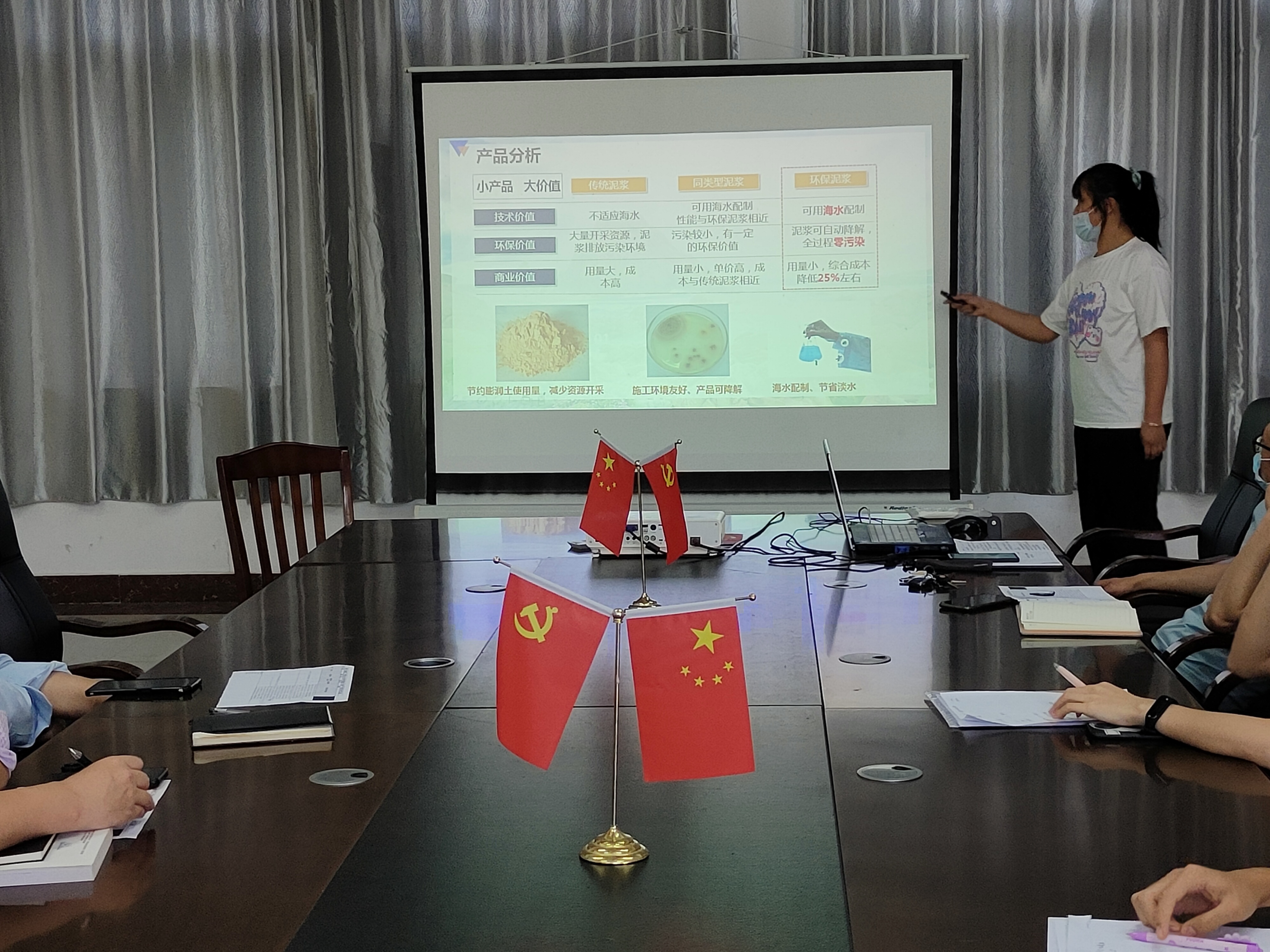 本次培训会重点打磨“新型土木结构节能装置”与“土木高性能环保泥浆”两个项目,项目主要负责人严格按照“互联网+”比赛要求进行路演。演讲结束后评委们针对策划书、PPT以及路演表现情况纷纷提出了宝贵的指导意见,并综合评委们建议,最终针对每个项目存在的问题提出可建设性的建议,使得项目整体更加完善,为项目进一步完善和提升打下坚实的基础。
