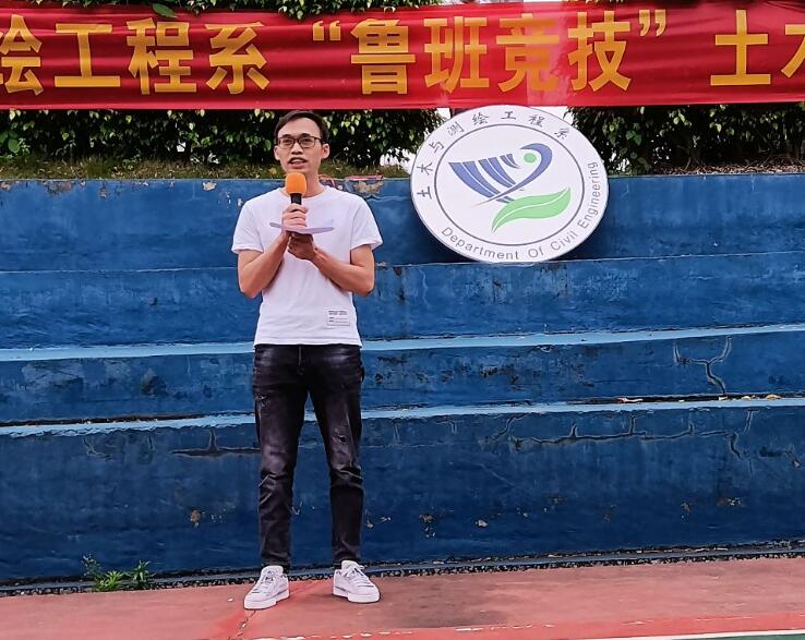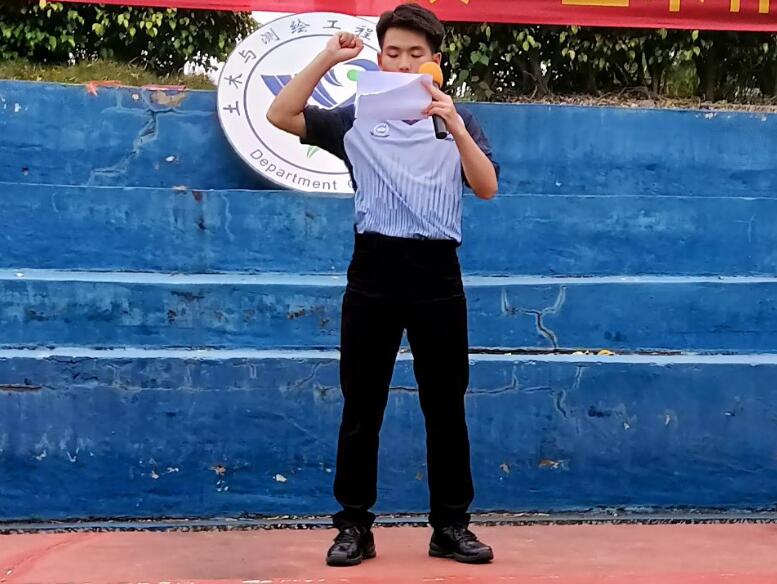 开幕式伊始,为保证比赛的“可靠性、公正性、公开性”,裁判员代表和球员代表分别上台宣誓。随后,韦选建老师就本次篮球赛发表重要讲话,他希望运动员们勇于拼搏,赛出成绩,遵守规则,并注意安全。最后,韦选建老师为赛事的成功开展送上美好祝愿,并宣布土木与测绘工程系“鲁班竞技”土木杯篮球赛正式开幕。
