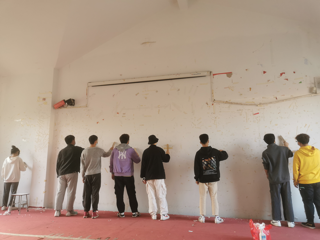 在我系团总支学生会及五大团体的号召下,组成了15名学生骨干志愿者团队参加活动。志愿团队分为三组,分别负责粉刷、后勤和清洁。在合理的分工下,学生骨干们通力合作,开始了对大学生活动中心的修葺,粉刷组的工作任务是对大学生活动中心内墙进行粉刷,情节组则是负责对玻璃窗进行清洗,在后勤组对物资的充分准备下,修缮任务有条不紊的进行着,大学生活动中心也在逐渐变得新颖。面对改善校园环境的志愿任务,身为大学生,应当不忘初心,牢记使命,发扬为同学办实事的奉献精神,为学校为社会做出自己力所能及的贡献。