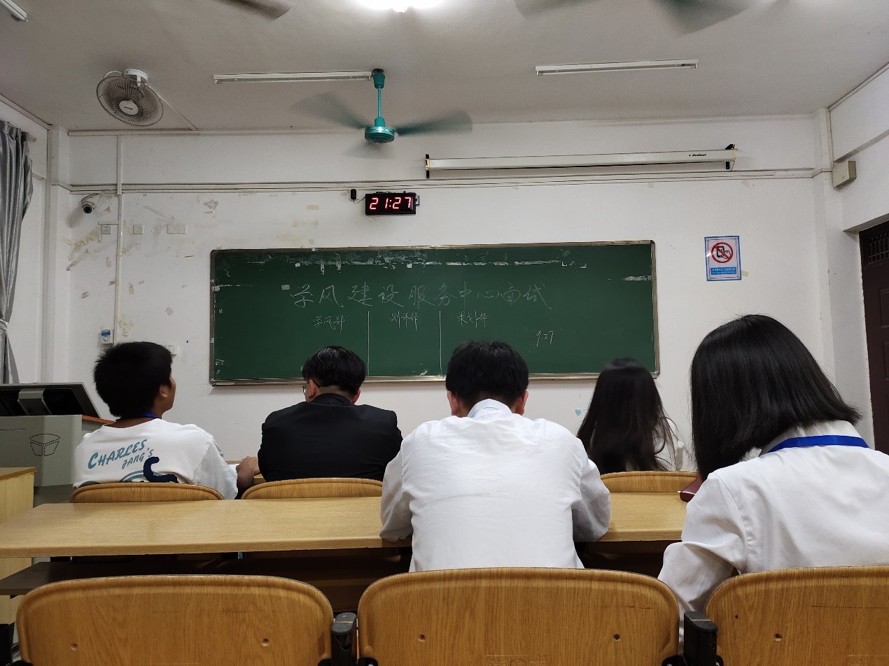 第二阶段——面试阶段。本着公平公正的原则,学风中心在物华楼204教室、205教室进行了第一轮纳新面试,各部门都安排了四到五位评委。在新生们简单的自我介绍后,评委们会针对本部门的情况对新生们提出几个问题。也许是因为第一次面试,大部分同学还是比较紧张,但是同学们都能充分的发挥自己的临场应变能力,积极应对评委们提出的问题。