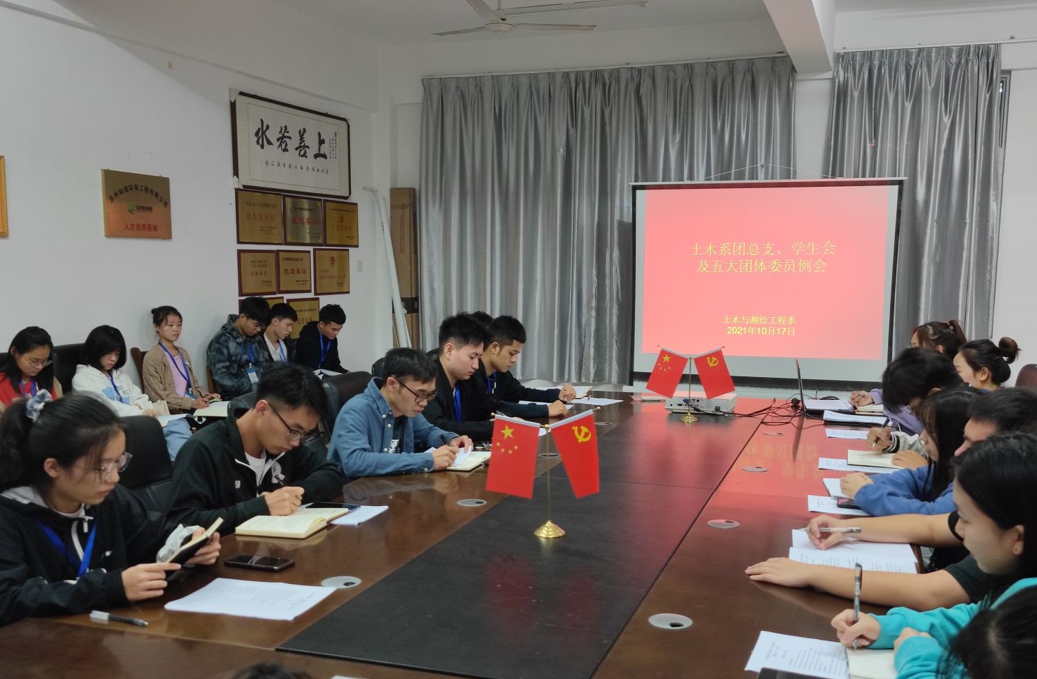 为加强我系各大团体的建设,提升学生的学习和工作技能,进一步推进我系后期工作,我系于10月17日(星期日)下午6:30,在物华楼406会议室召开团总支、学生会及五大团体全体委员例会,团总支书记韦选建老师出席本次会议,团总支、学生会及五大团体全体委员到场与会。