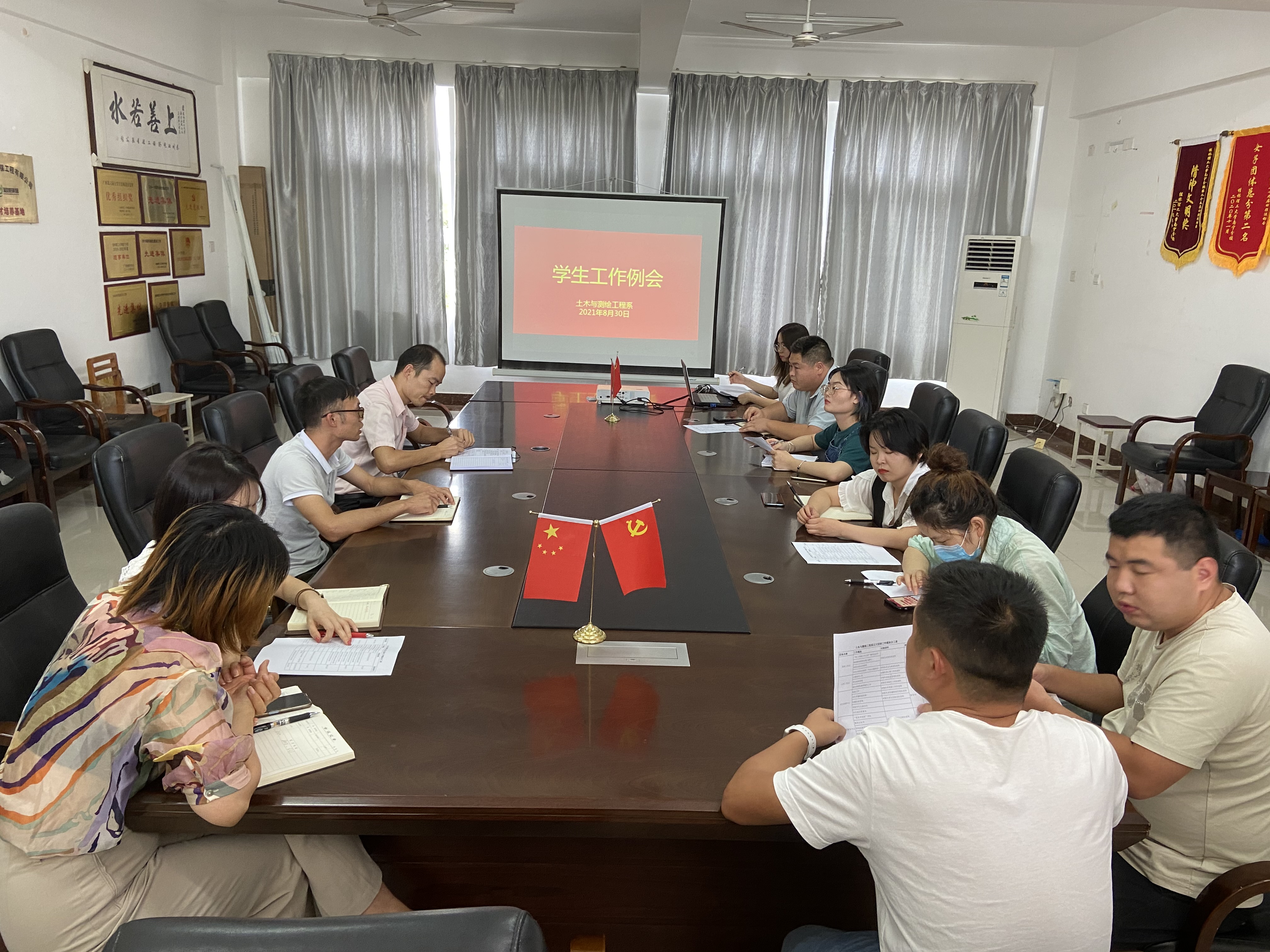 8月30日下午,我系在物华楼6406会议室召开2021年秋季学期开学初学生工作会议。我系党总支副书记兼学工组组长罗勇、团总支书记韦选建及全体辅导员参加会议。