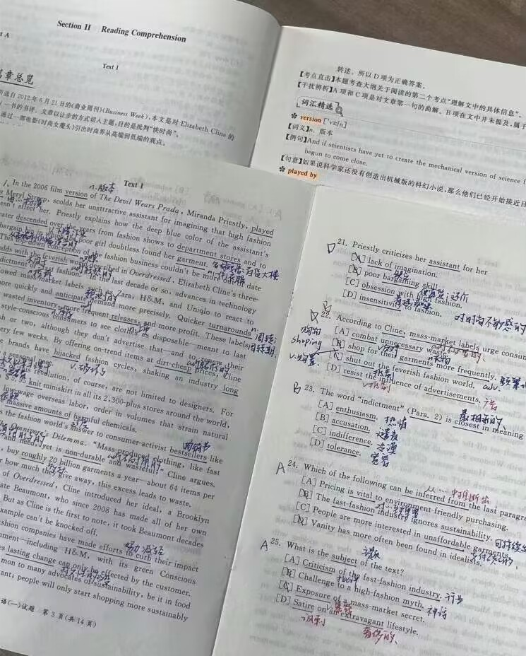4.7月后:按照个人进度开始使用真题精读真题搭配唐迟的讲解、唐静的翻译课、易奚人的完型、刘琦的新题型、b站up我是瑞思拜的作文模板。