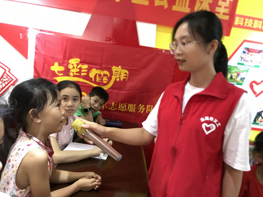 2020年的暑假,她有幸参加了北流市义工协会举报的“七彩假期,情暖童心”的大学生公益课堂活动,以及创建全国文明城市志愿服务行动等活动,此活动是引导广大团员青年以青年志愿服务队的方式,在寒暑假期间为留守儿童、务工随迁子女等,围绕学业辅导、亲情陪伴、素质拓展、自护教育、思想引领、心理辅导等内容展开活动。在这段对于她来说特别的时间里,也正努力地学习着,成长着。她学习到了使用相机拍出更好的照片的一些小技巧,自主学会了如何做PPT,怎样更好的设计自己的课程,如何引导小朋友们进入课堂,与伙伴们的朝夕相处,也锻炼了自己人际交往的能力,从他人身上看到的闪光点,可能也正是自己所缺少的、需要学习的。从中自己既学习到了很多新知识、新能力,也体会到了所有的付出都是有意义的,而其中的意义需要他们自己通过不断的总结来定义。在这段特别的时光里,专属她的意义是:不要计较自己付出了很多,而是多思考自己得到些什么;他人身上的“闪光点”,可能也正是自己需要努力的方向。她从未想过未来自己会从事教师这一职业,起初就是抱着尝试一下的心态参与大学生公益课堂这一志愿服务活动,但是在和这些孩子们短暂的相处时光里,她探寻到了这份和孩子们在一起学习成长的专属意义。在大学生公益课堂志愿服务活动期间,因为表现出色,被评为“大学生志愿服务积极分子”。