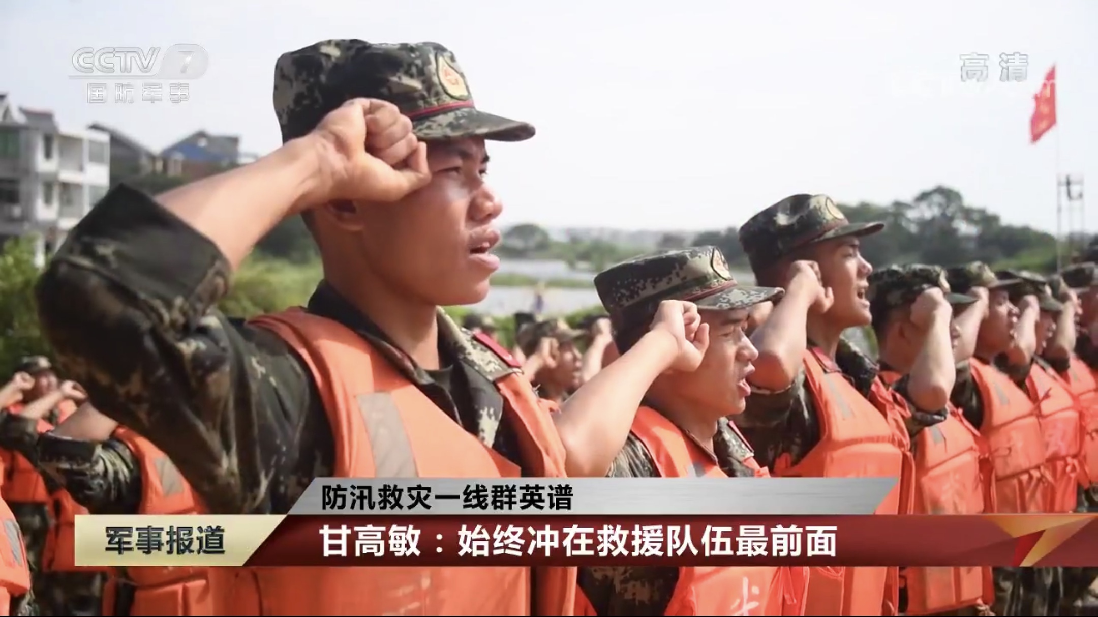 镜头下的他,眼神坚忍不拔,写满了民族的希望。在采访中他表示:“我觉得作为一名军人,不管年龄大小,都应该担起保家卫国的责任,我还是一名党员,就更应该冲在抗洪抢险一线,保护人民生命财产安全”。