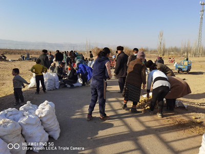 恰玛古滞销,组织群众装袋,奔赴阿克苏联系老板统一售卖。