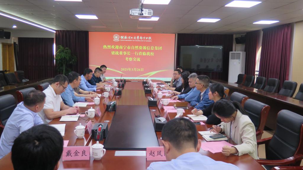 梁战一行参观了分校精密测量实训室、地理空间信息产业学院、大数据中心,并在空港校区行政楼416会议室参加交流座谈会。座谈会上,梁战介绍了南宁市自然资源信息集团有限公司企业发展历程、项目类型、人员构成等基本情况,并表示信息集团在自然资源监测、遥感数据应用、人工智能等方面急需新技术支撑和相关应用人才,希望校企双方以此为契机,深入推动合作,实现互利共赢。