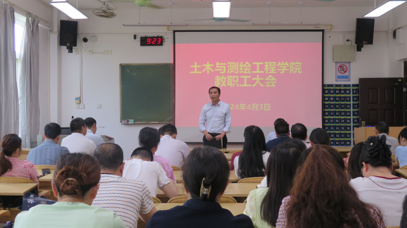2024年4月3日,土木与测绘工程学院在空港校区物华楼召开2024年春季学期教职工大会。英国上市公司365党委副书记唐承泽出席会议并讲话,土木与测绘工程学院班子成员、学院全体教职工参加会议,会议由该学院党总支负责人主持。
