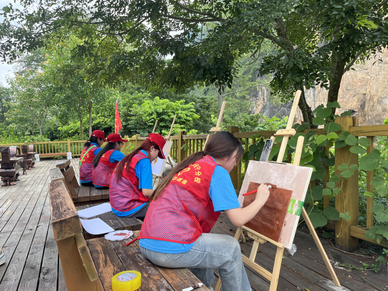 7月11日,社会实践团参会岩画特征绘制岩画,把岩画刻印在纸张上,更刻印在同学们的心里,绘画是以视觉传达历史故事,以手绘形传达情意。实践团在作画的过程中对于花山岩画历史更加了解,对于体会其中蕴含古人所留下的智慧更加深刻。同时,为了收集更多宣传素材,助力花山岩画的保护。