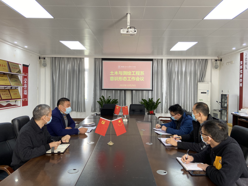 11月25日上午,土木与测绘工程系2022年第三季度意识形态工作研判会在物华楼406会议室召开,系部领导班子成员出席会议。会议由系部党总支书记黄文学主持。