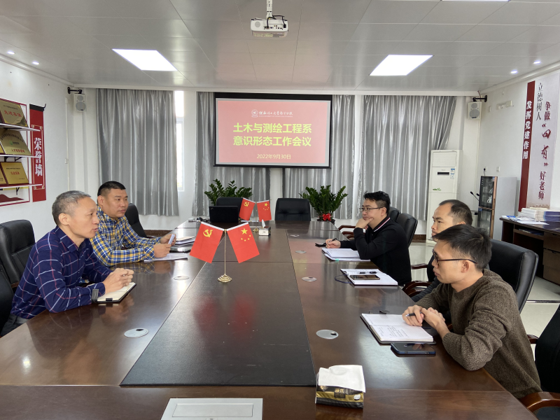 9月30日上午,土木与测绘工程系2022年第三季度意识形态工作研判会在物华楼406会议室召开,系部领导班子成员出席会议。会议由系部党总支书记黄文学主持。