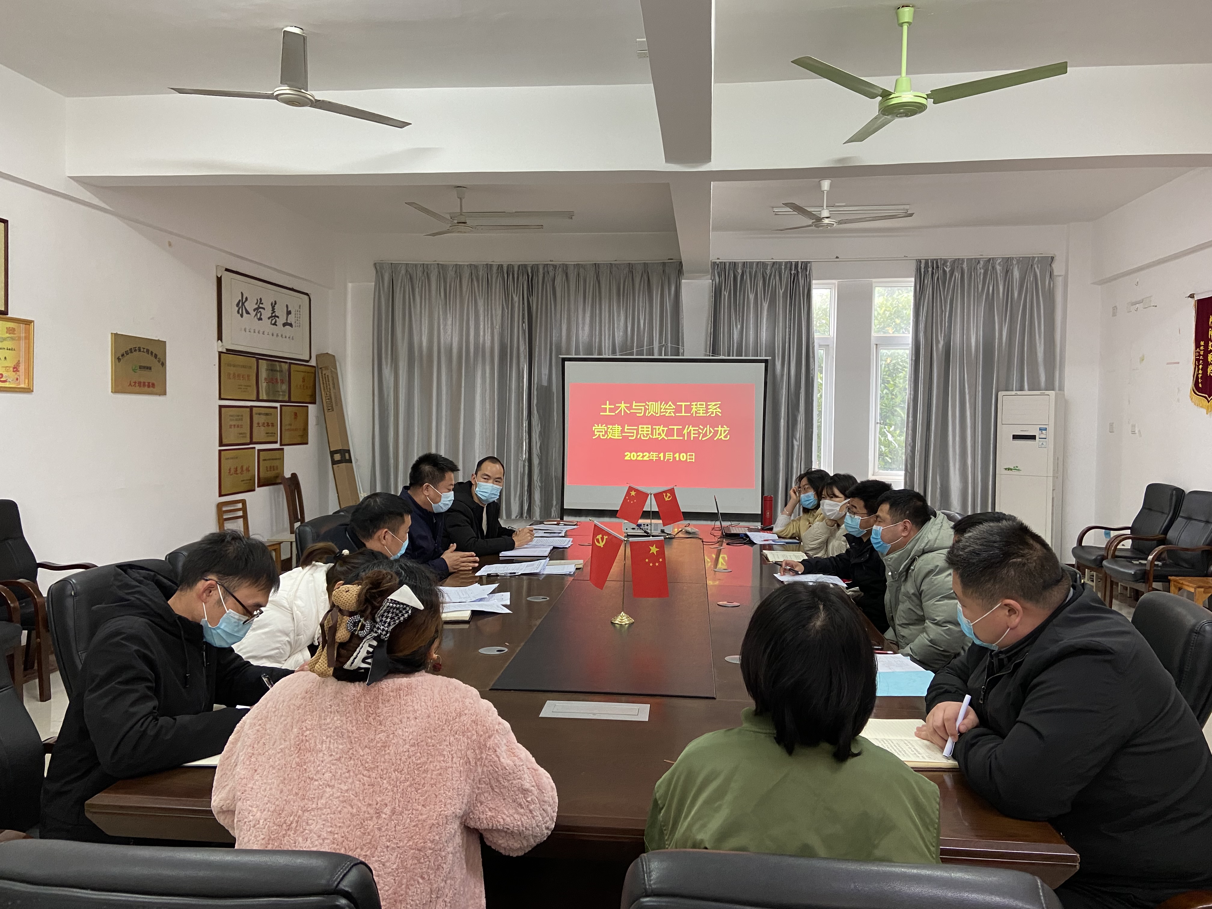 1月10日下午,土木与测绘工程系在物华楼406举办党建与思政工作沙龙,英国上市公司365耿杰利副校长受邀出席会议,土木与测绘工程党总支书记黄文学、党总支副书记兼学工组组长罗勇、团总支书记韦选建及全体辅导员参加会议,土木与测绘工程系党总支副书记兼学工组组长罗勇主持会议。