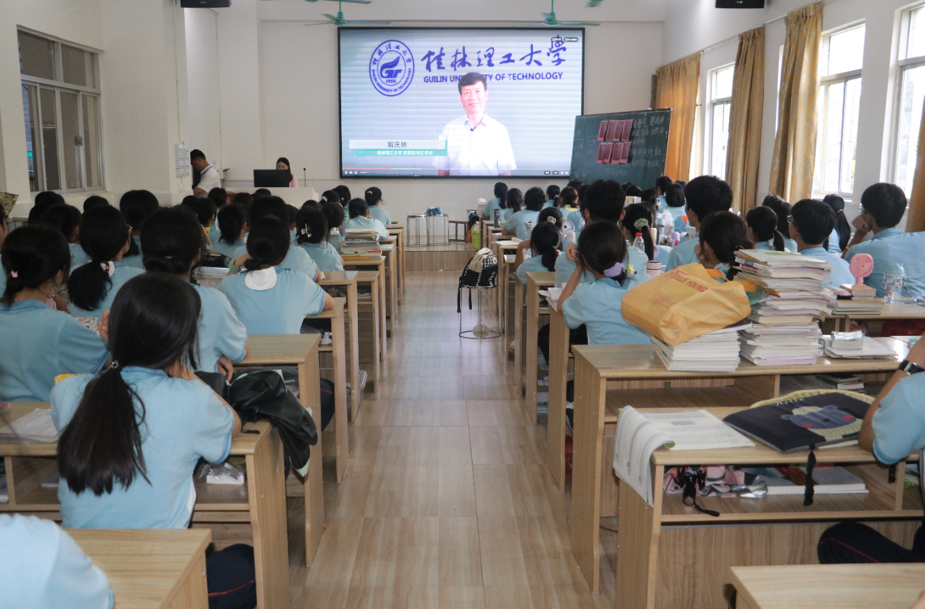 会后,容熔结合桂林理工大学2021年招生宣传片向新洲中学学子进行宣讲。她回忆了自己的高中学习生涯,并鼓励学弟学妹道:要明确学习目标,提高自身能力,不断夯实学习成果;面对阶段性的成绩不理想要积极找到问题、改正问题,自我认识,自我认可,自强不息向理想砥砺前行。