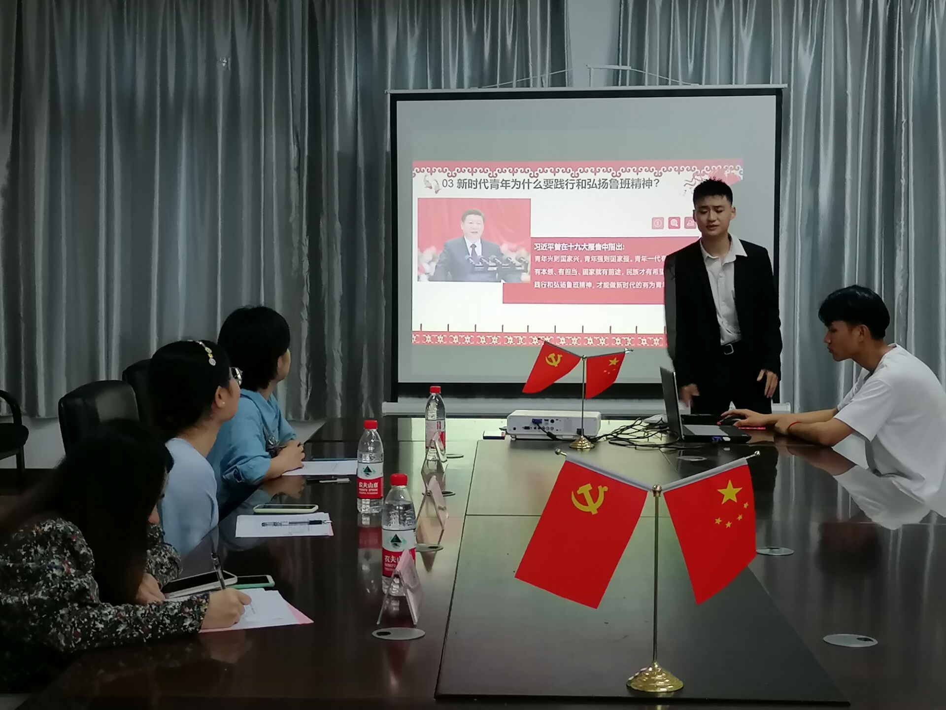 为弘扬鲁班精神,提升我系学子艰苦奋斗先进思想与敬业专注、精益创新的职业情操,3月22日下午,我系于物华楼406会议室举办“弘扬鲁班精神,做新时代有为青年”主题演讲比赛初赛,辅导员老师孔雅慧、宋雨潞、赖莉莉受邀出席。