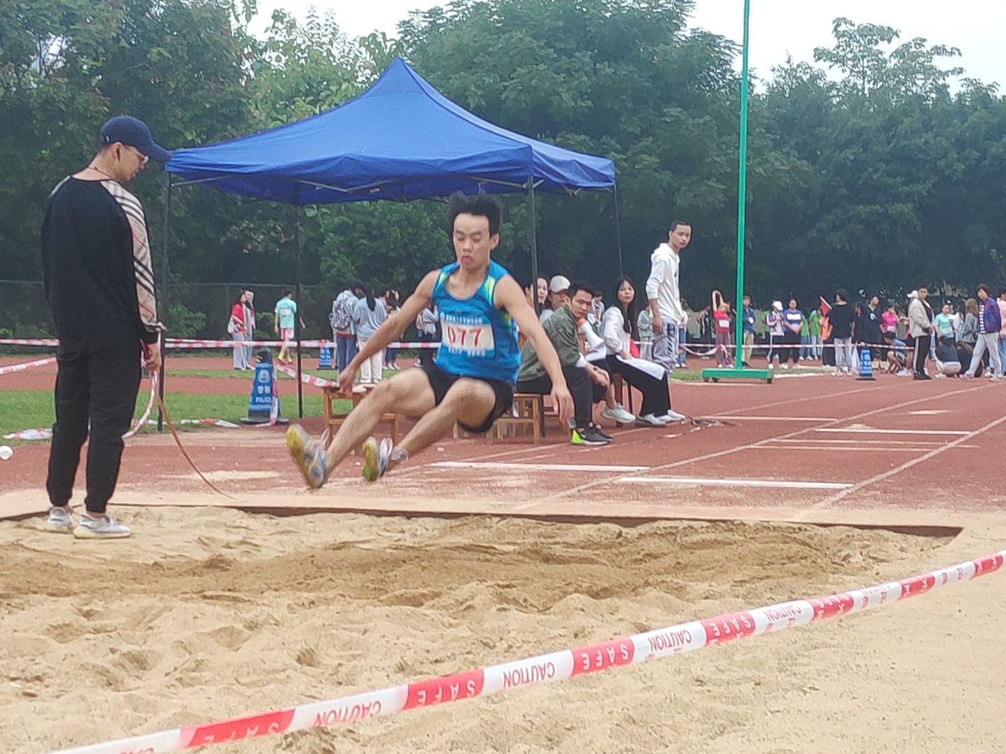 11月6日上午,分校在田径场如期进行着男子组三级跳远预选赛。
