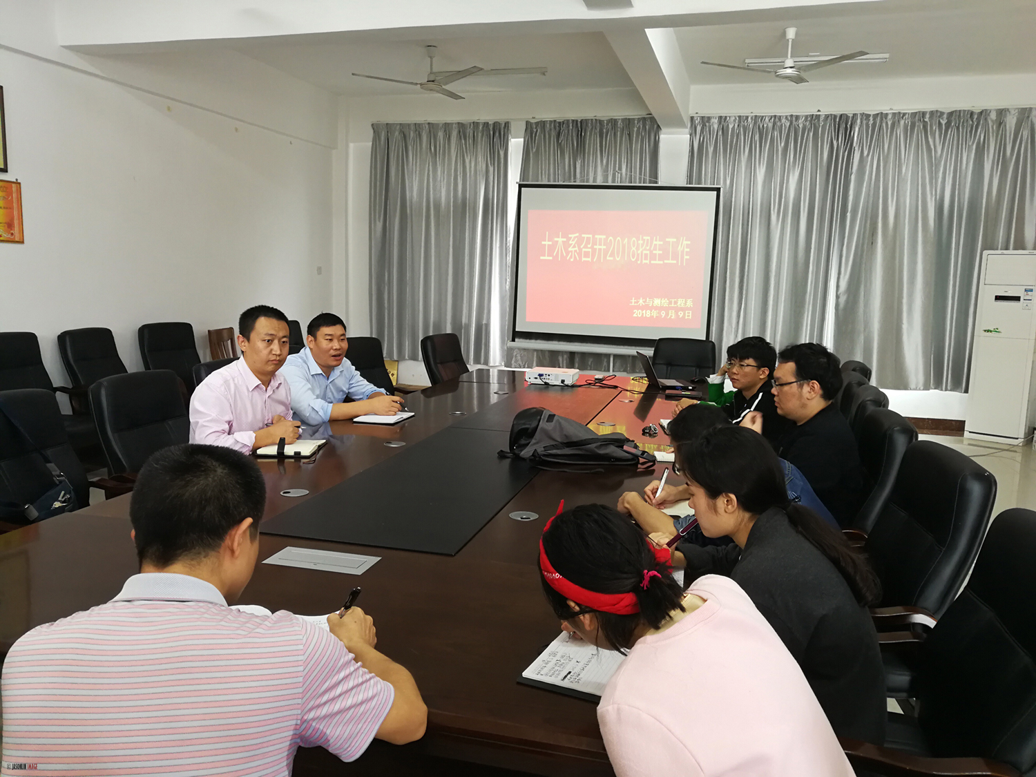 10月11日下午,我系在物华楼406会议室召开2020年招生工作总结会议,系党总支书记黄文学、副主任赵凤阳等领导班子参加会议,部分辅导员到场与会。