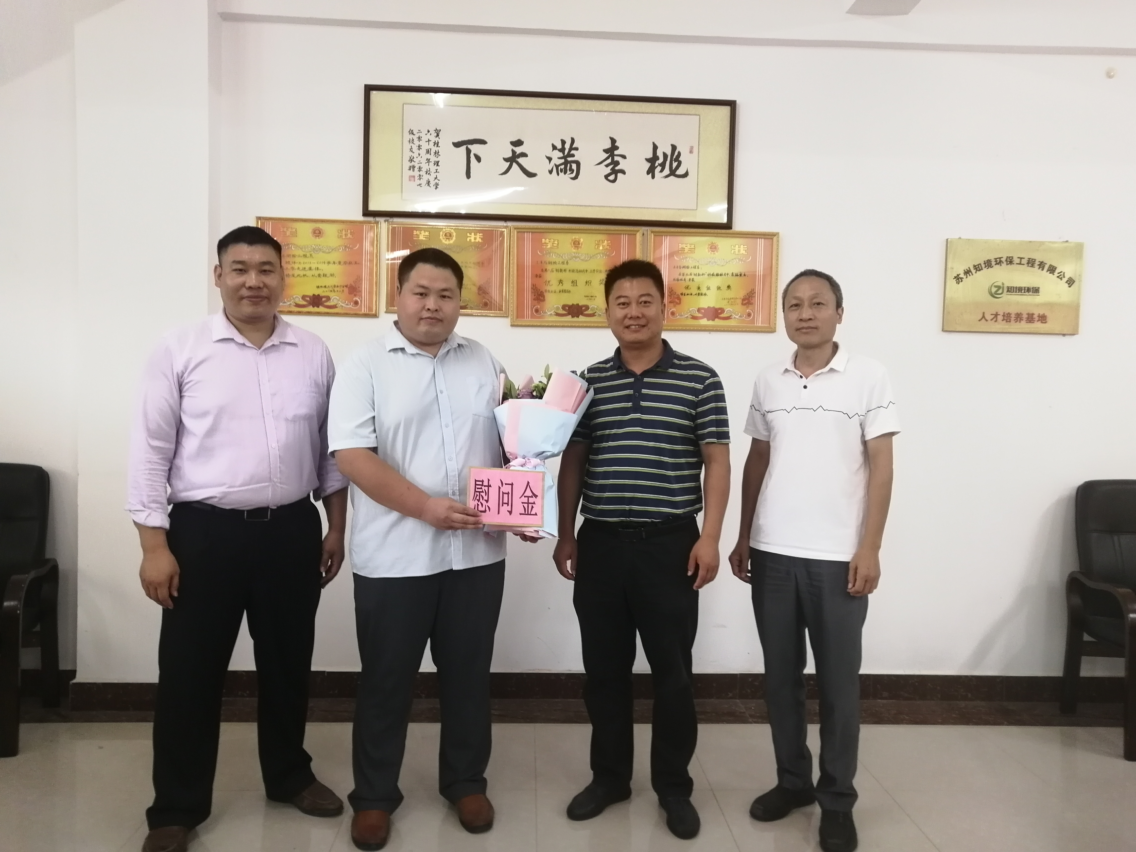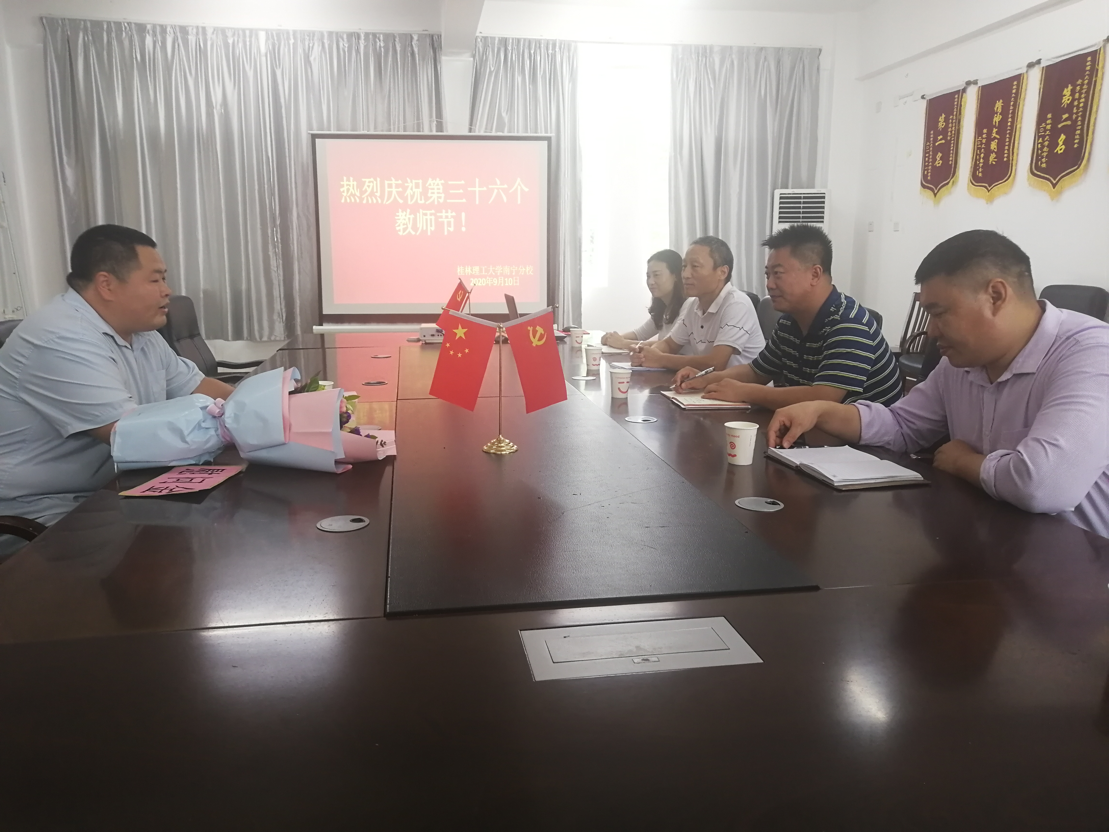 耿耿园丁意,拳拳育人心。9月10号教师节,在物华楼6406会议室,分校副校长耿杰利在分校校办主任谢晓明、系主任刘茂军、党总支书记黄文学、党总支副书记邹凤婵的陪同下走访慰问了教师代表方艳东,为他送去了鲜花和慰问金,并通过他向为学校建设做出贡献、心系学校发展的全系教职员工致以亲切的问候和诚挚的感谢。