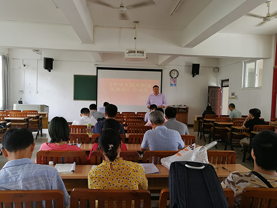 会上,黄文学书记从《中华人民共和国民法典》颁布的意义,民法典的总篇章进行详细讲解。他要求,全系教职工要深入学习贯彻实施民法典,以民法典学习为契机,拓宽教师自身学习宽度,将民法典内容渗透到教书育人当中,自觉做民法典的实施者和传播者,推动民法典学习宣传教育制度化、常态化。