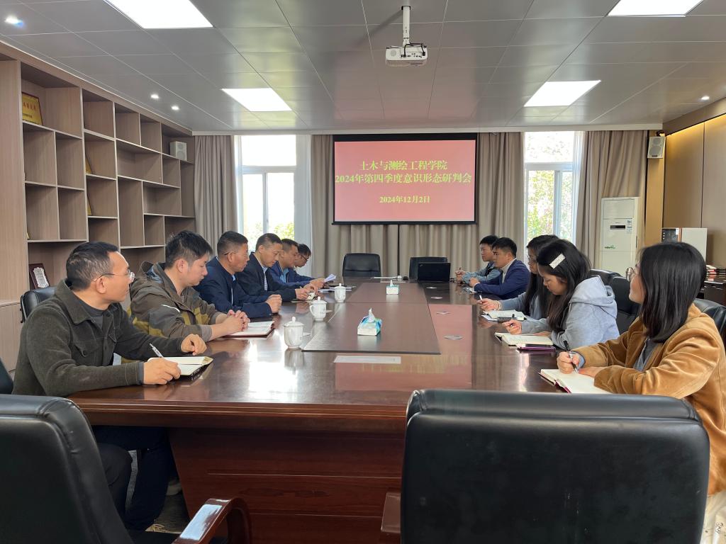 12月2日上午,土木与测绘工程学院2024年第四季度意识形态研判会在6406会议室召开,学院领导班子、全体辅导员参加本次会议,会议由党委书记刘茂军主持。