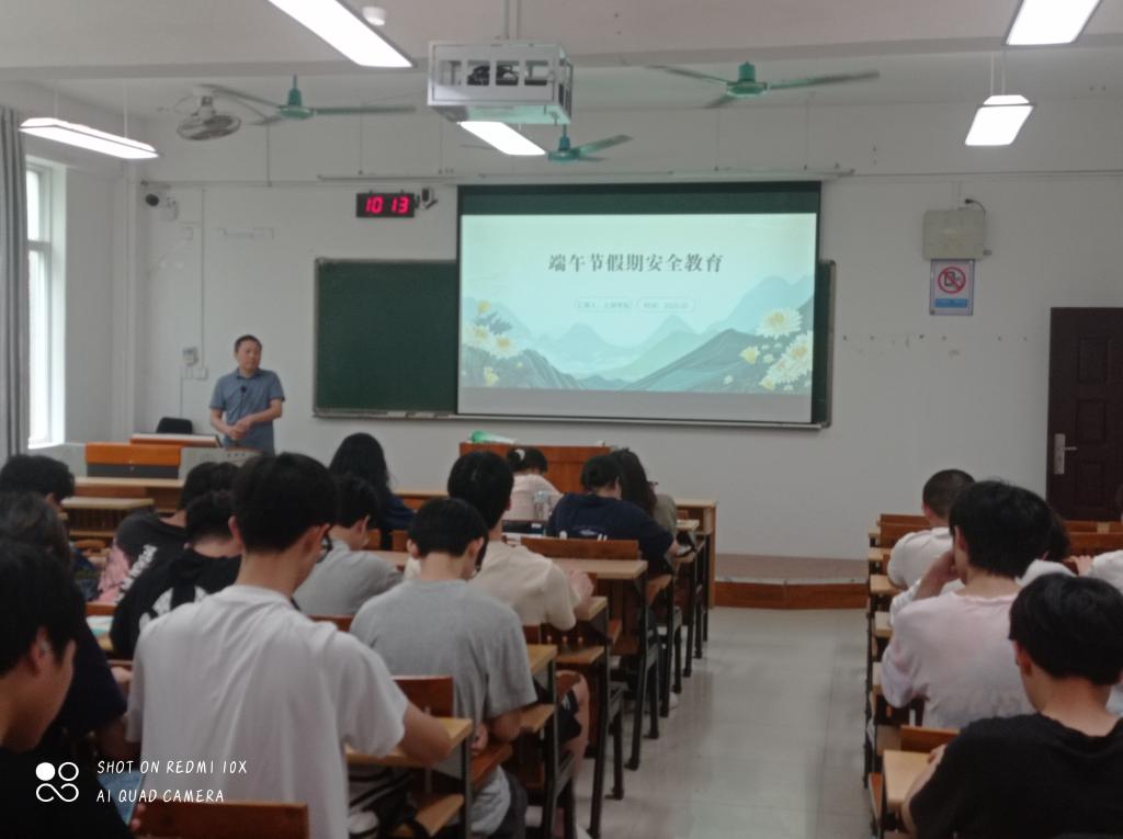 为切实保障学生度过一个平安、祥和的端午节假期,土木与测绘工程学院于5月22-29日组织召开假期安全教育主题班会。会议聚焦消防安全、交通安全、防溺水、网络安全、防诈骗、心理健康、饮食健康及离返校流程等八大关键领域,通过剖析近期真实案例,系统部署假期安全防范工作,着力提升学生安全意识和自护能力。