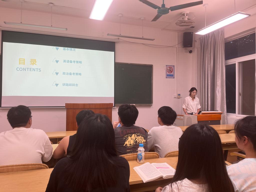 通过考研经验系列分享会活动,助力同学们的考研升学计划。同时期待同学们能进一步做好自身大学学习规划,及早明确发展方向,创造条件和路径展开行动,为实现自身目标努力奋斗。