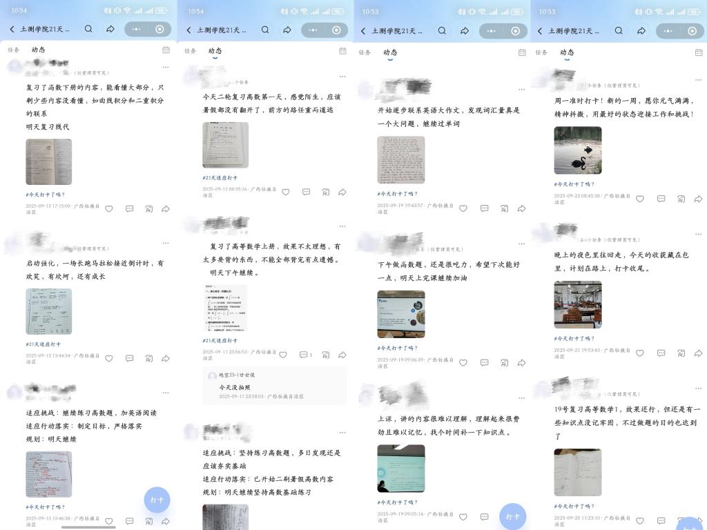 活动以“行为强化-认知重塑-习惯萌芽”为核心逻辑,紧扣大学生学业转型、生活独立、社交拓展等核心适应需求设计打卡体系。参与者在21天内自主选择“新技能学习”“规律作息养成”“专业学科交流”等适配目标,通过每日记录、阶段性复盘、同伴互评的多元形式,完成自我探索与行为实践。此次活动跳出传统心理教育单向灌输模式,以沉浸式实践让学生在重复行动中提升心理韧性,在目标达成中积累自我效能感。
