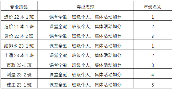为贯彻落实土木与测绘工程学院“学风建设先进集体”创建考评方案的要求,以班级为单位抓好大学生基础文明养成教育,扎实开展以评促建活动,现将2024-2025学年度第一学期9月份2021级本科、2022级本科、2023级本科及专科“学风建设先进集体”名单公示如下: