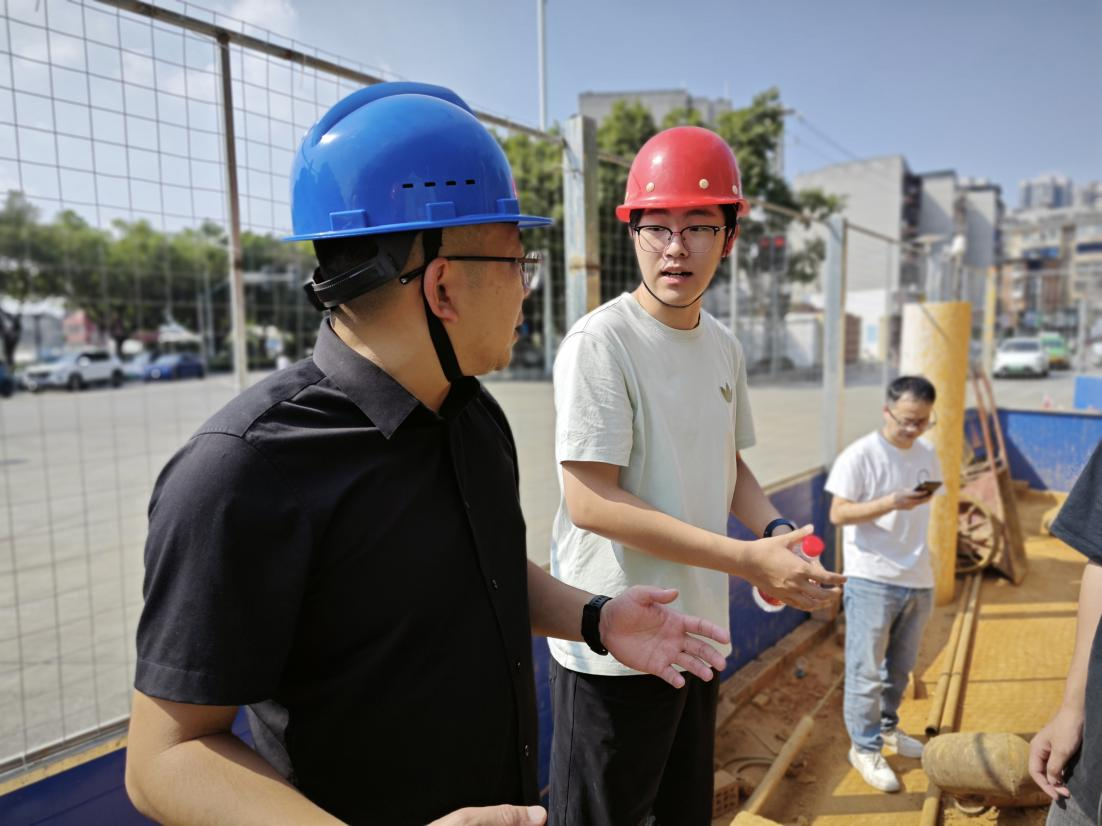 由吴克雄老师指导的两项大创类项目:“变废为宝”项目负责人刘浩东和“浆遇良材”项目负责人黎远伶,分别向启山建筑介绍了他们研发的“盾构弃渣配置同步注浆材料”和“土木工程环保泥浆材料”两个项目。启山建筑技术人员结合现有土木市场情况和实际施工经验,对两个项目提出了宝贵建议,为项目的优化升级提供了重要参考。11月15日上午10点,桂林理工大学英国上市公司365师生一行前往启山建筑的施工现场进行考察学习。启山建筑的技术人员详细讲解了相应的解决方法和泥浆的使用技巧,为师生们积累了宝贵的实践经验。