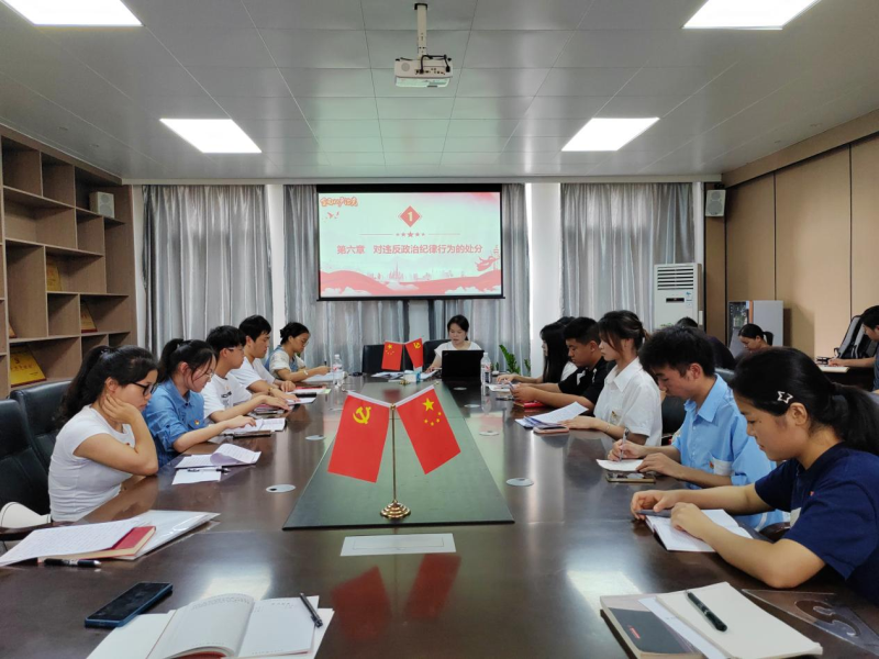6月13日下午,我院学生第六党支部于物华楼6406室集体学习《中国共产党纪律处分条例》,本次学习由支部书记孔雅慧同志主持,支部全体党员参加。