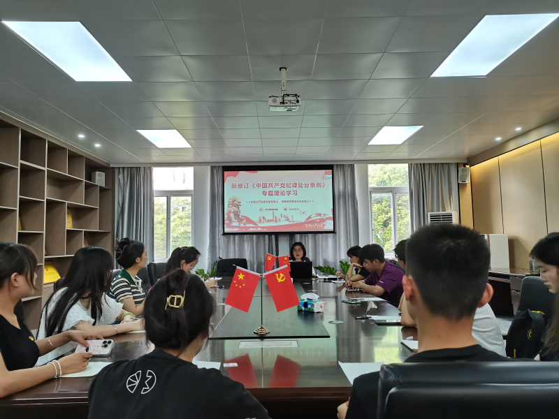 我院学生第四党支部于 2024年4月28日下午在6406开展“学习新修订《中国共产党纪律处分条例》”专题理论学习。本次专题理论学习由支部书记赖丽莉同志主讲。